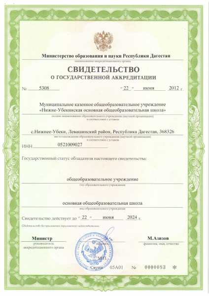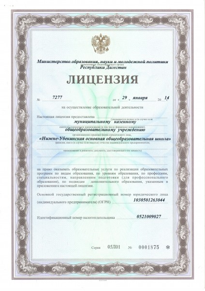 Полное наименование образовательной организации* Муниципальное казенное общеобразовательное учреждение "Нижне-убекинская основная общеобразовательная школа"