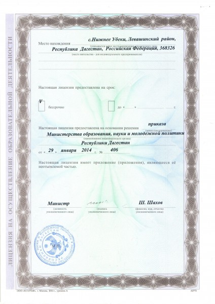 Адрес местонахождения образовательной организации* 368317, Республика Дагестан, Левашинский район, с. Нижнее-Убеки